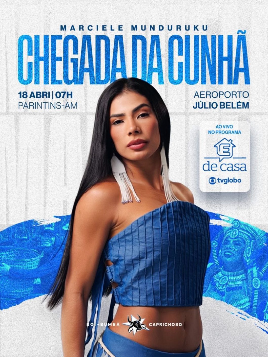 O Boi Caprichoso convida a Nação Azul e Branca e toda a comunidade de Parintins para recepcionar a cunhã-poranga Marciele Albuquerque, que chega à cidade neste sábado (18), às 8h, no Aeroporto Júlio Belém. A concentração está marcada para as 7h, em um momento especial de acolhimento e celebração à artista que leva com orgulho o nome de Parintins e…